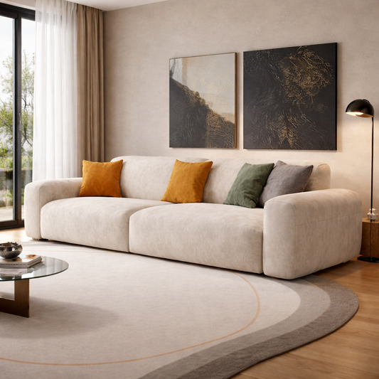 كنبة فاخرة بتصميم عصري ولمسة دافئة