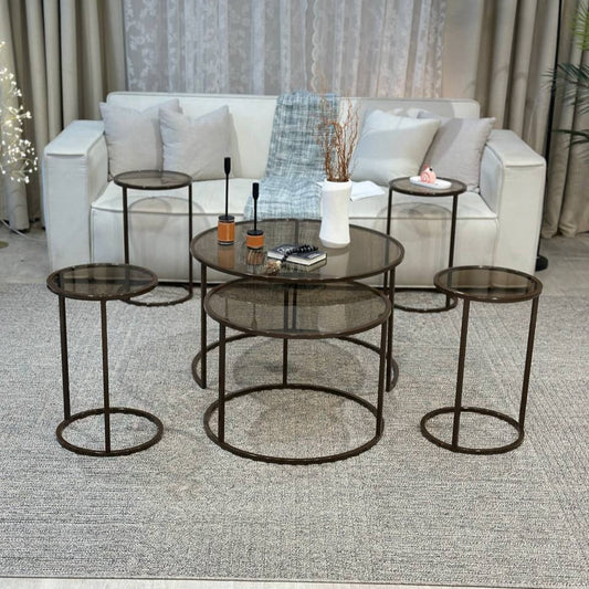 • طقم طاولات ضيافة لون بني زجاج بني مع 4 خدمة