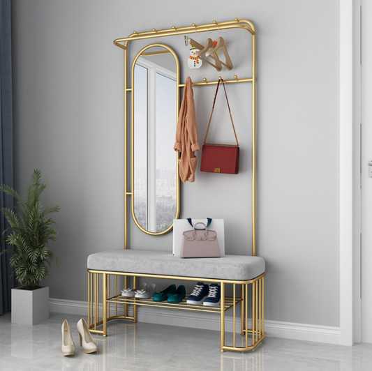 علاقة ملابس معدنية بمرآه