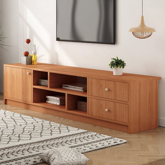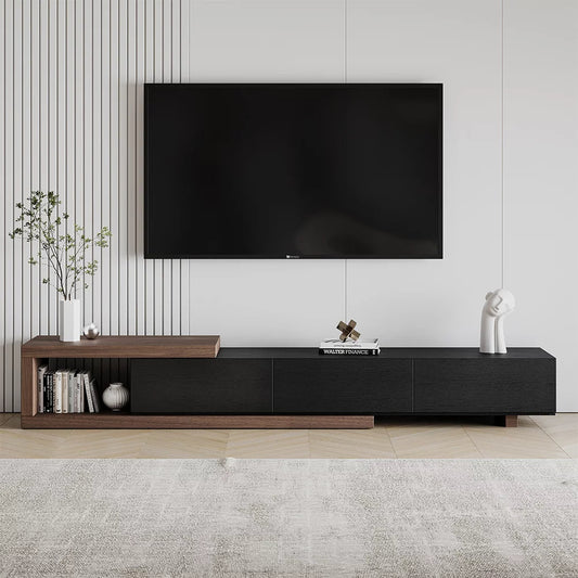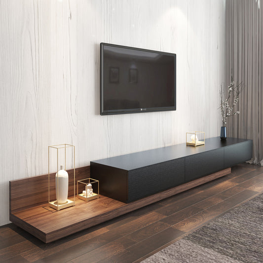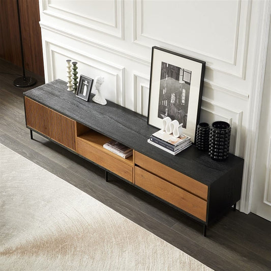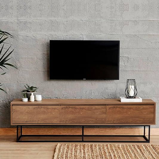 طاولة تلفاز بتصميم عصري أنيق ولمسة خشبية دافئة