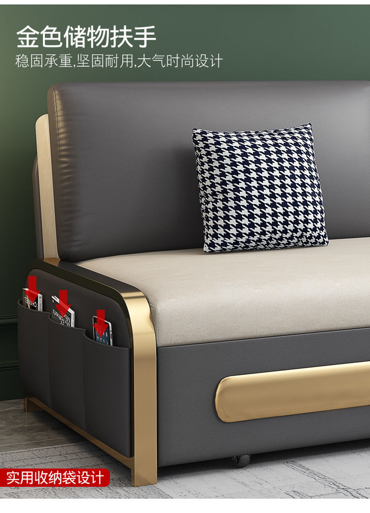 اريكة جلدية قابلة للطي الي سرير مصنوعه من اجود خامات الجلد و المعادن متاحه باللون الرمادي و البرتقالي و الاخضر متوفره بمقاس واحد و هو ارتفاع 90 سم و عرض 105 سم و عمق 90 سم و يمكن استخدامها في المنزل و الفنادق