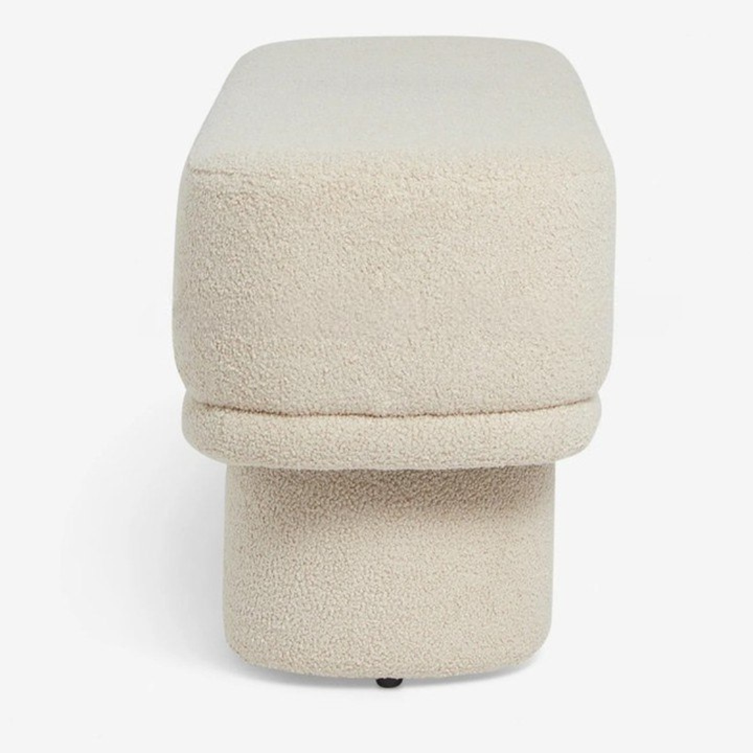 اجعل منزلك أكثر راحة وأناقة مع هذا البانكيت العصري هذا. بتصميمه الانسيابي ولونه الكريمي الدافئ، سيضيف لمسة من الهدوء والرقي لأي غرفة. المقعد مغطى بقماش البوكليه الناعم ، ليمنحك إحساسًا فاخرًا ومريحًا للغاية عند الجلوس. يتميز بقاعدتين سميكتين ذات شكل عصري، مما يجعله ليس فقط مريحًا بل قطعة ديكور مميزة أيضًا. يمكنك استخدامه في المدخل لارتداء الأحذية، أو في غرفة المعيشة كمقعد إضافي، أو حتى في غرفة النوم عند نهاية السرير. إنه الخيار المثالي  لإضافة الراحة، الأناقة، والعملية إلى مساحتك بكل سهولة