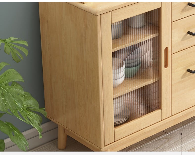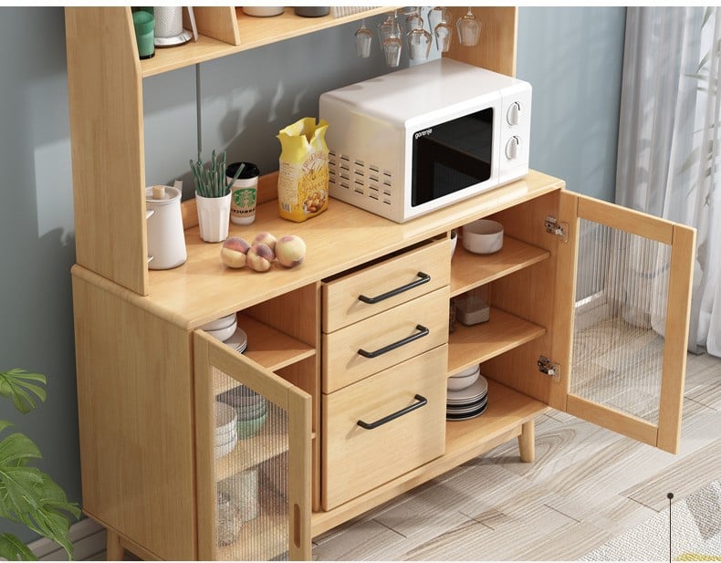 بوفيه ذات مساحه كبيره لتخزين عدد أكبر من الاشياء ف هو يحتوي علي رف علوي ذات درفتين زجاج وسطح خشبي متين يمكنك وضع عليه بعض الأجهزه الكهربائيه و مقسم من أسفل لثلاث أدراج و درفتين و يمكنك ايضاً استخدامه كركن للقهوه و هو متوفر ب لوني الخشبي - البني و مقاس ( العمق 40 سم * الارتفاع 168 سم * العرض 120 سم )
