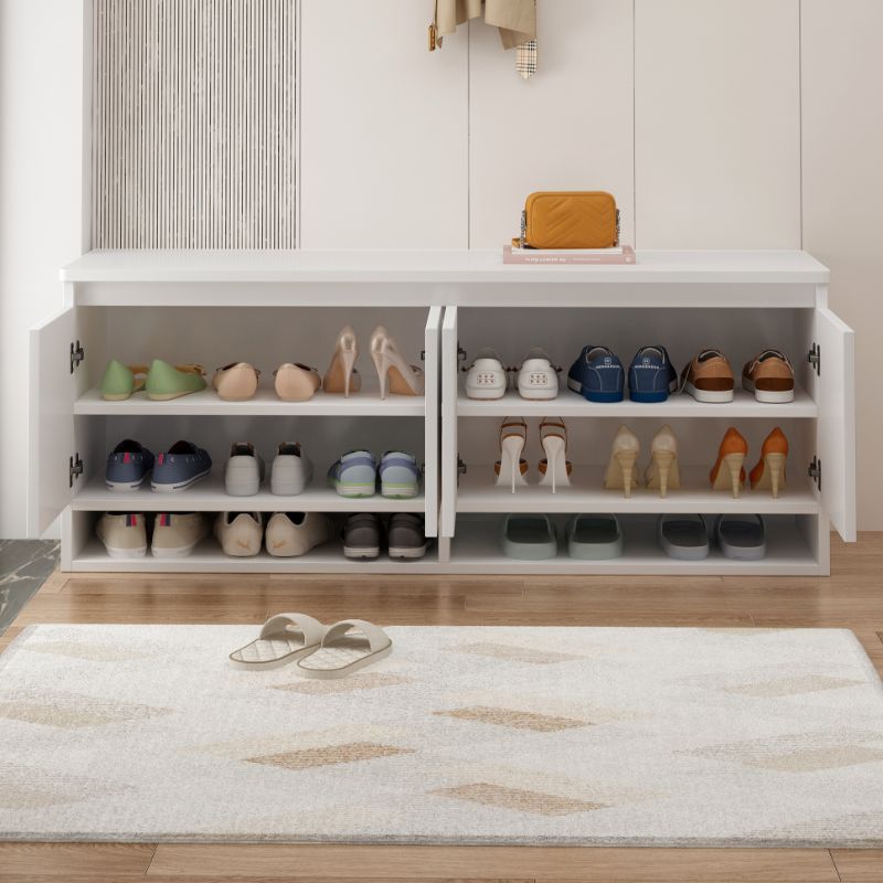 ودع فوضى الأحذية مع خزانة التخزين الأنيقة هذه، المصممة خصيصًا للمداخل وغرف الملابس. تتميز الخزانة بتصميم عصري باللون الأبيض الناصع، مما يضفي إشراقة ونظافة فورية على أي مساحة واللون البيج الدافئ . توفر الوحدة سعة تخزين هائلة من خلال أرفف واسعة ومفتوحة بمجرد فتح الأبواب الجانبية، مما يسهل الوصول إلى مجموعة كبيرة من الأحذية وتخزينها بشكل منظم. السطح العلوي المستوي يمكن استخدامه كـ طاولة عرض للمفاتيح، الحقائب، أو عناصر الديكور، مما يجمع بين التنظيم العملي والجمالية. إنها القطعة المثالية لمن يبحث عن حل تخزين واسع، بسيط، وأنيق للحفاظ على نظام المدخل دون عناء.