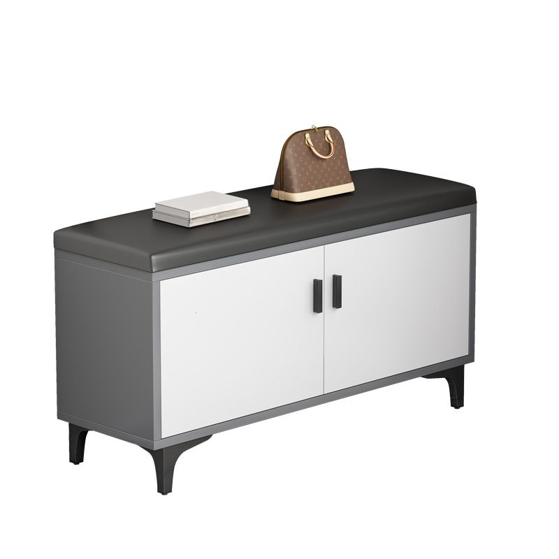حوّل مدخلك إلى مساحة رائعه ومنظمة مع هذه الوحدة المزدوجة الأنيقة. تتميز بتصميم عصري يجمع بين الإطار الرمادي الداكن وواجهات الأبواب البيضاء النظيفة، الجزء العلوي مزود بـ مقعد مبطن باللون الأسود يوفر راحة فورية للجلوس أثناء الاستعداد للخروج. الجزء السفلي يوفر خزانة تخزين واسعة ببابين مثالية لترتيب الأغراض الشخصية أو الأحذية بعيداً عن الأنظار. كما تم تصميم مساحة سفلية مفتوحة أسفل الخزانة، مفيدة لتخزين الأحذية اليومية. إنها القطعة المثالية التي تخدم وظيفتين أساسيتين الجلوس والتخزين في تصميم واحد مدمج، ليمنح مدخلك منظراً منظماً وأنيقاً.