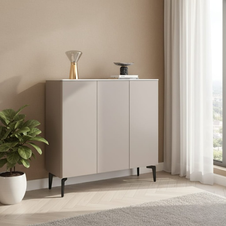 خزانة أحذية أنيقة بتصميم عصري وانسيابي تضيف لمسة راقية لمدخل منزلك . تساعدك على تنظيم الأحذية بشكل مرتب وتوفير مساحة بفضل تصميمها العملي والمغلق الذي يحافظ على المظهر الأنيق للمنزل مصنوعة بجودة عالية وأرجل معدنية متينة لثبات أكبر، متوفرة بثلاثة مقاسات لتناسب جميع المساحات