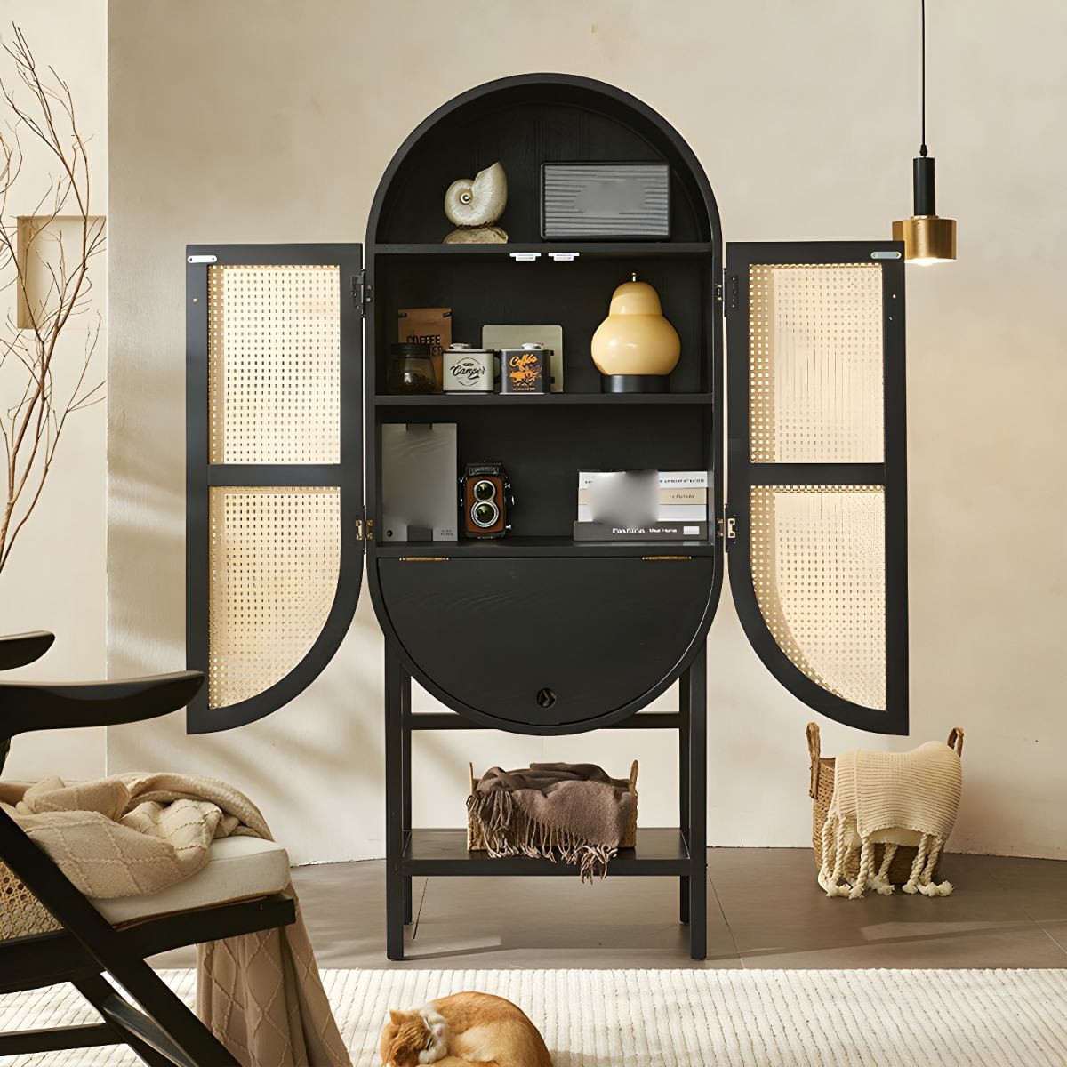 خزانه جانبيه بتصميم ناعم فهى تعد مزيجاُ جميلاً بين التصميم الراقى و الأنيق فى منزلك . مما يضفي لمسة من الأناقة على مساحة تناول الطعام خاصتك. تحتوي هذه الخزانة الجانبية العصرية على مساحة تخزين واسعة مع أدراج ورفوف وخزائن بأبواب من الروطان الطبيعي، مما يسمح لك بالحفاظ على أساسيات تناول الطعام منظمة. تتميز بهيكل خشبي متين هندسي ولمسة تشطيب مقاومة للخدش، مما يضمن طول العمر.