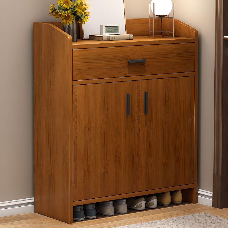 أضف لمسة دافئة ومنظمة إلى مدخلك مع خزانة الأحذية هذه، المصممة للاستفادة القصوى من المساحة. تتميز الخزانة بألوان رائعه تندمج بسهوله مع أثاث منزلك، مع تصميم يجمع بين التخزين المفتوح والمغلق. الجزء السفلي يوفر مساحة تخزين مغلقة ببابين واسعين ومقبضين عصريين، مثالية لحفظ الأحذية والمحافظة على مظهر المدخل خالياً من الفوضى. أما الجزء العلوي فيحتوي على درج أفقي لتخزين المفاتيح والأغراض الصغيرة، وسطح علوي محاط بإطار يوفر مكاناً أنيقاً لوضع مصباح، أو نباتات ديكورية. كما تم إضافة مساحة سفلية مفتوحة صغيرة لتخزين الأحذية سريعة الوصول. هذه القطعة المتكاملة هي الحل الأمثل الذي يجمع بين الجمال الخشبي الطبيعي، والتنظيم الفعال، في تصميم عمودي موفر للمساحة.