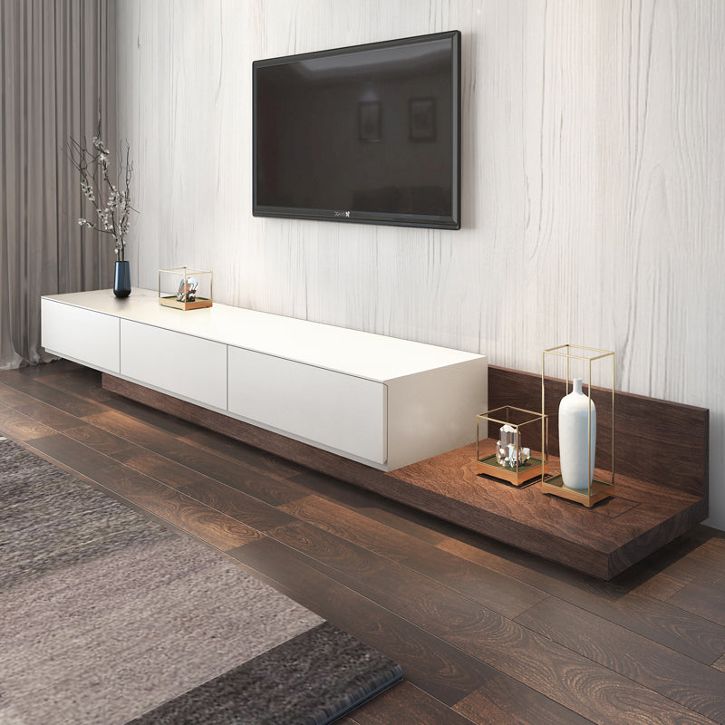 طاولة تلفاز بتصميم عصري أنيق ولمسة خشبية دافئة