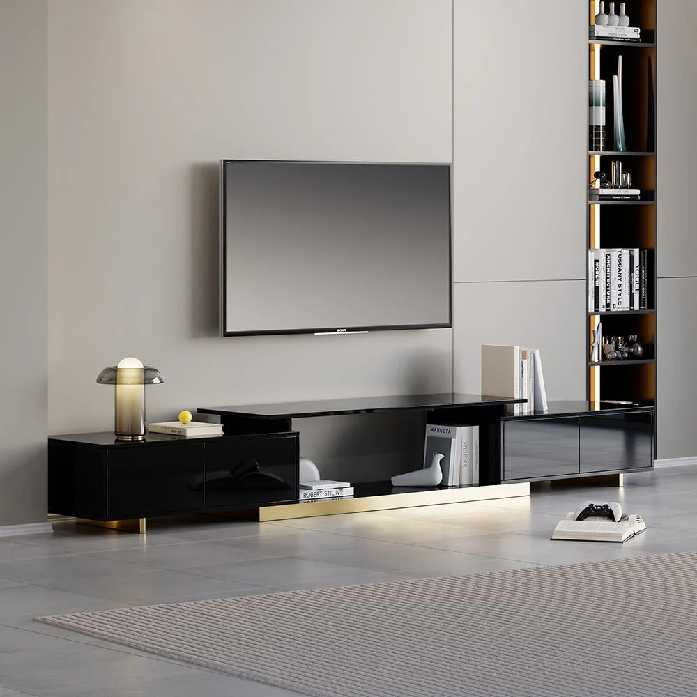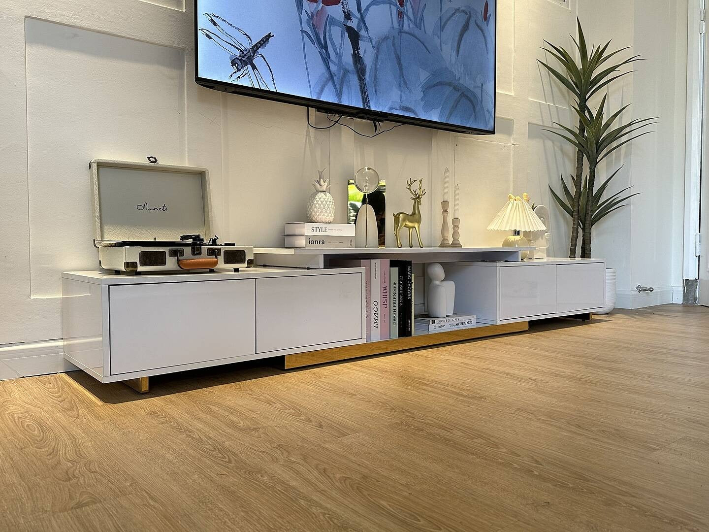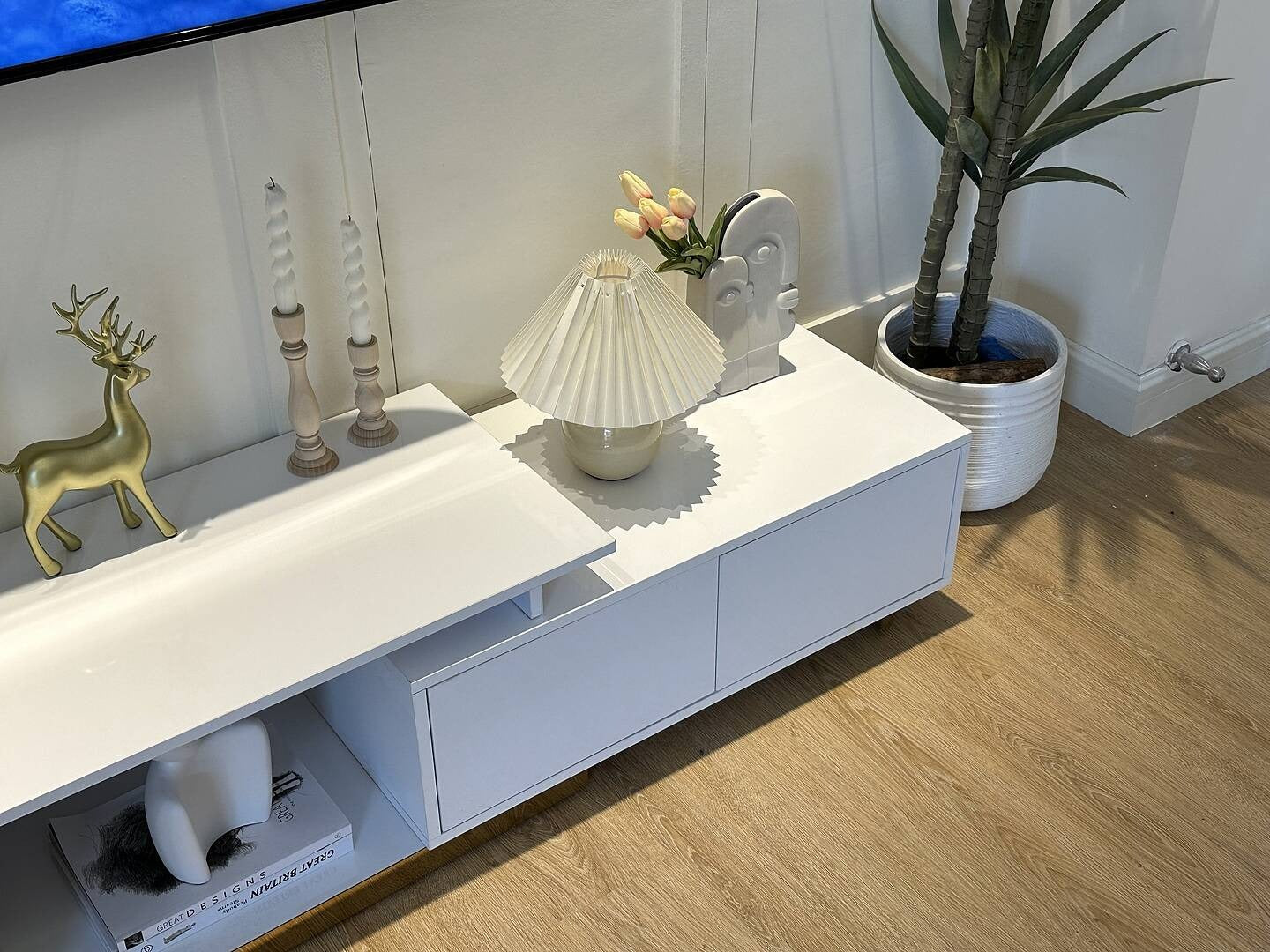 وحدة تلفاز عصرية بتصميم انسيابي يضيف لمسة رقي للمكان، تجمع بين جمال الخطوط البسيطة ومساحات التخزين العملية، لتمنحك مظهراً أنيقاً مرتّباً وتكمل ديكور غرفة المعيشة بلمسة فاخرة وهادئة.