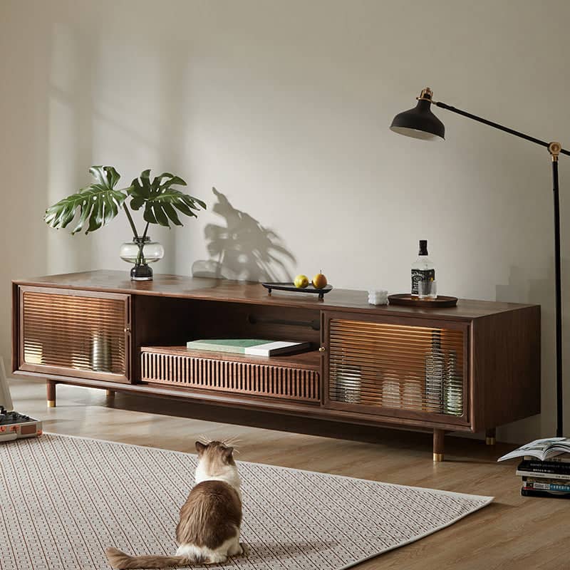 طاولة تلفاز بطابع ريفى مميز . يعطى طابع الهدوء على أثاث منزلك حتى تمنحك الشعور بالراحه و الأسترخاء . حيث تم أستخدام أجود أنواع الاخشاب المتينه مع أبواب أماميه من الزجاج حتى تمنحه لمسه نهائيه من الأناقه