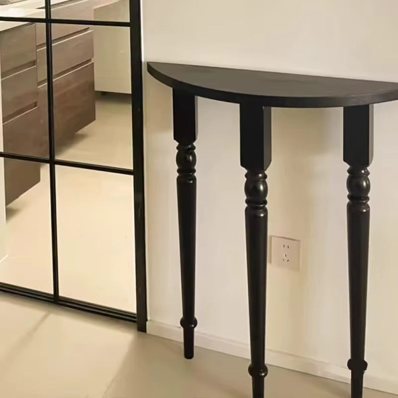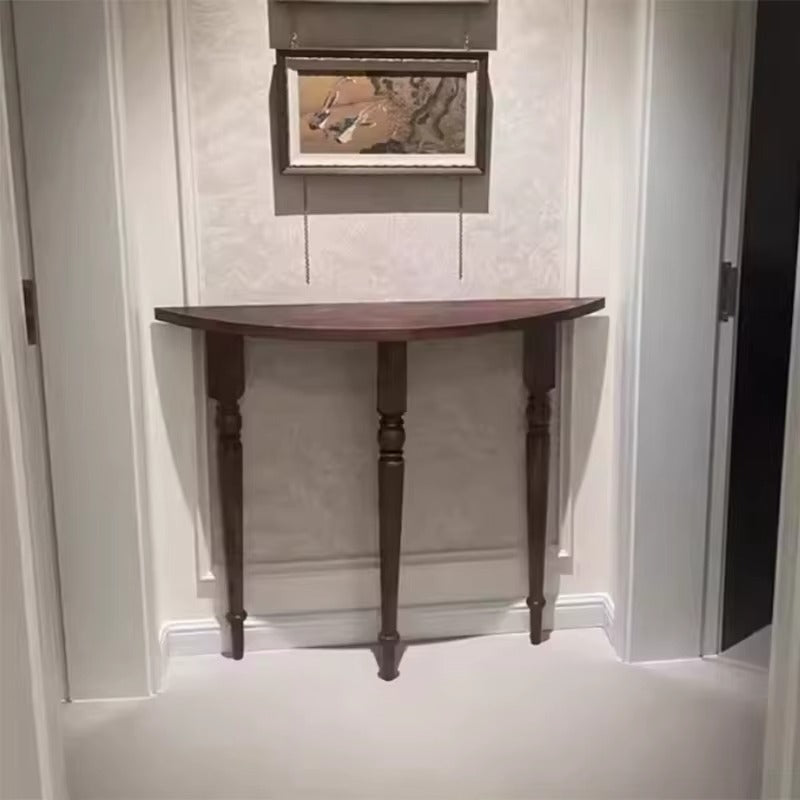 طاولة كونسول نصف دائرية بتصميم كلاسيكي أنيق، تضيف لمسة فخمة للمداخل والممرات بفضل أرجلها المنحوتة بتفاصيل راقية ولمعانها الخشبي الغني. عملية ومثالية لتنسيق الديكورات الصغيرة أو الشموع أو المزهريات، وتُعد خيارًا مثاليًا للمساحات الضيقة دون التنازل عن الأناقة.