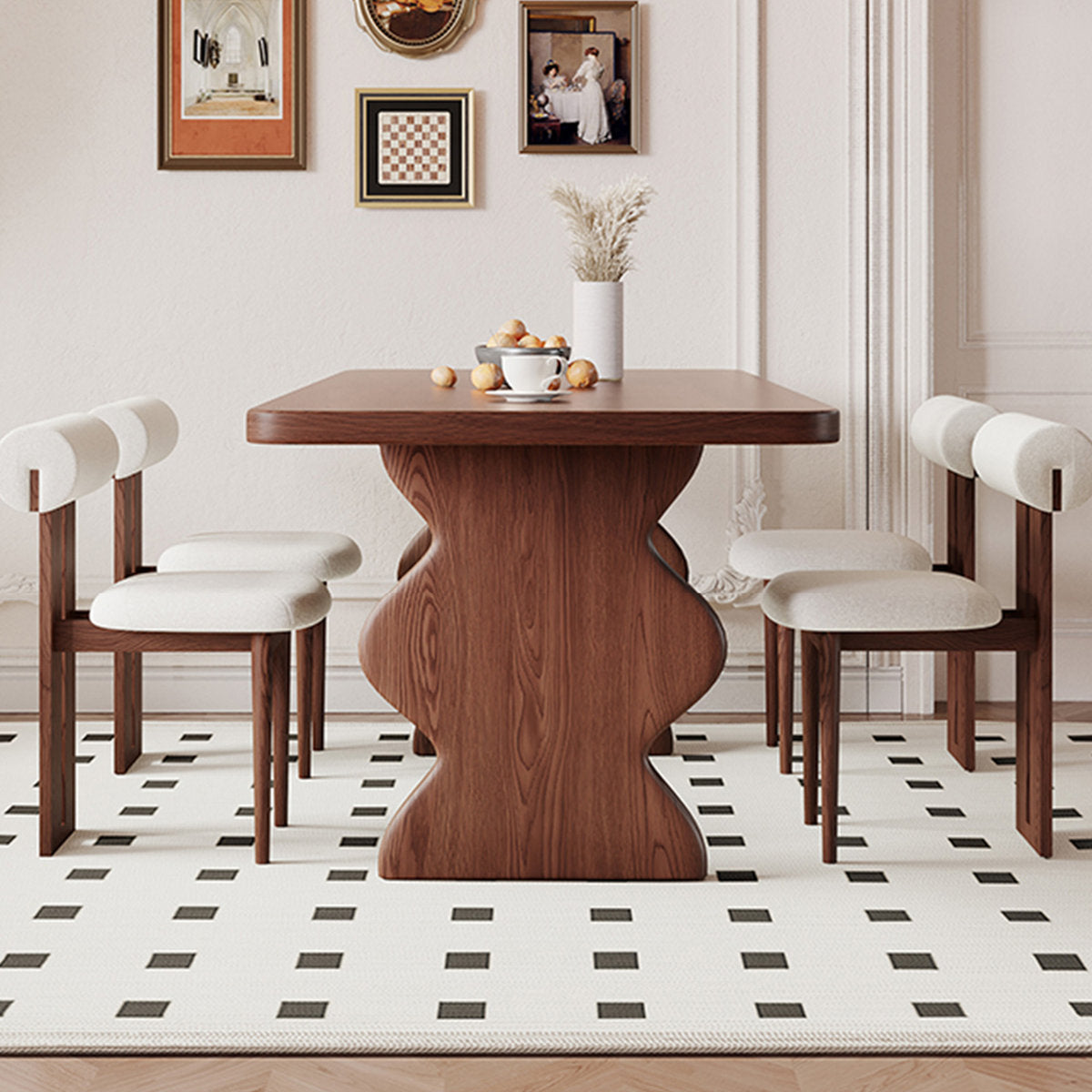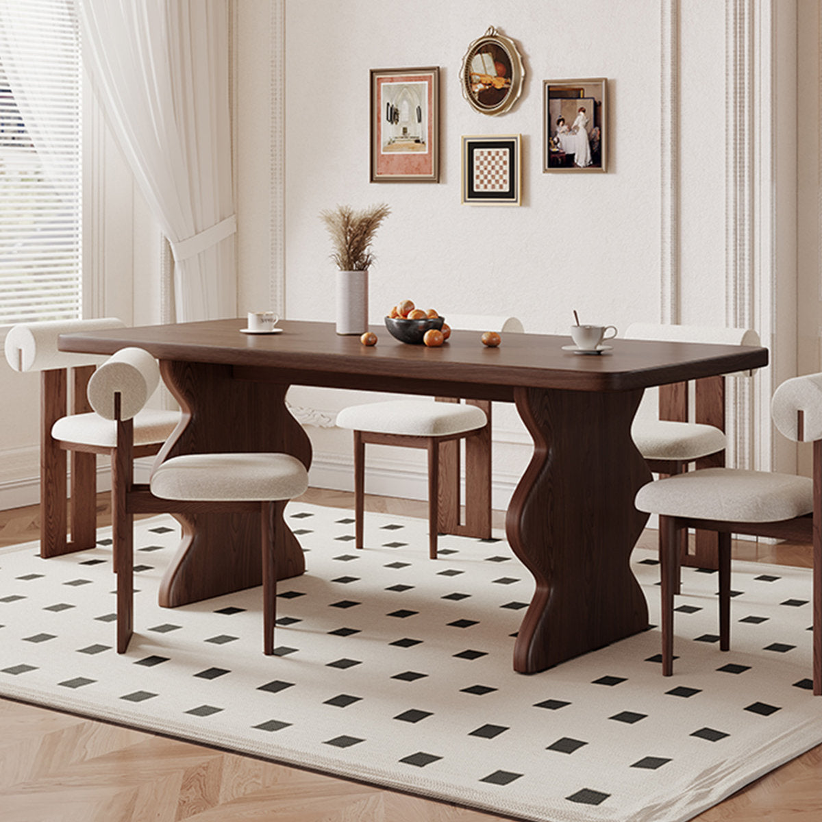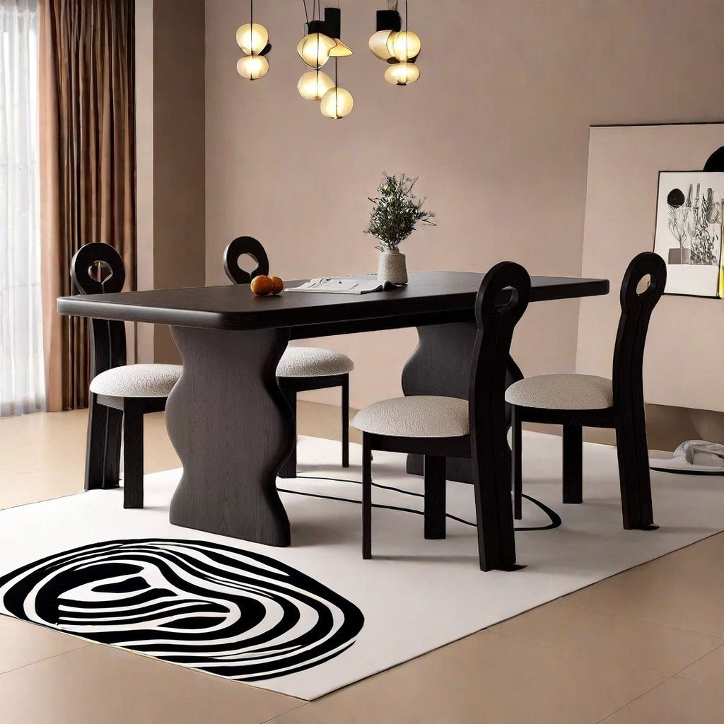 طاولة طعام تضيف فخامة وأناقة لأي مساحة، بتصميم فني مميز وأرجل منحوتة تمنحها شكل غير تقليدي يخطف الأنظار. مناسبة لغرفة الطعام أو جلسات الضيافة، وتوفر سطح واسع مريح لتقديم الوجبات اليومية أو استقبال الضيوف. تجمع بين العملية والجمال وتمنح المكان لمسة ديكور راقية بدون أي مجهود.