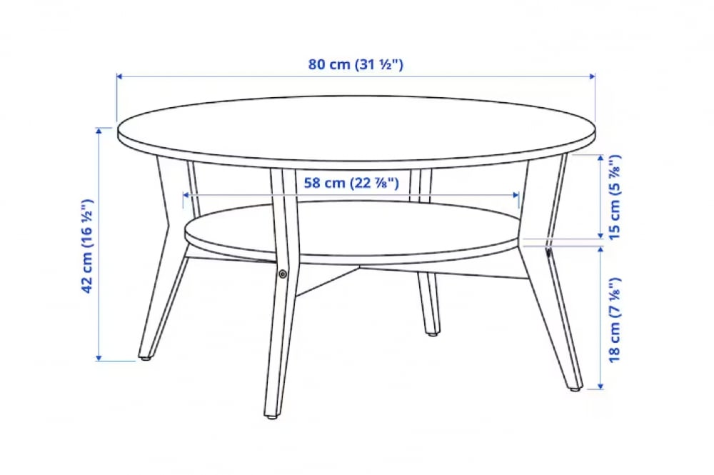 المقاس : ارتفاع 42 سم و قطر 80 سم و قطر الرف السفلى 50 سم