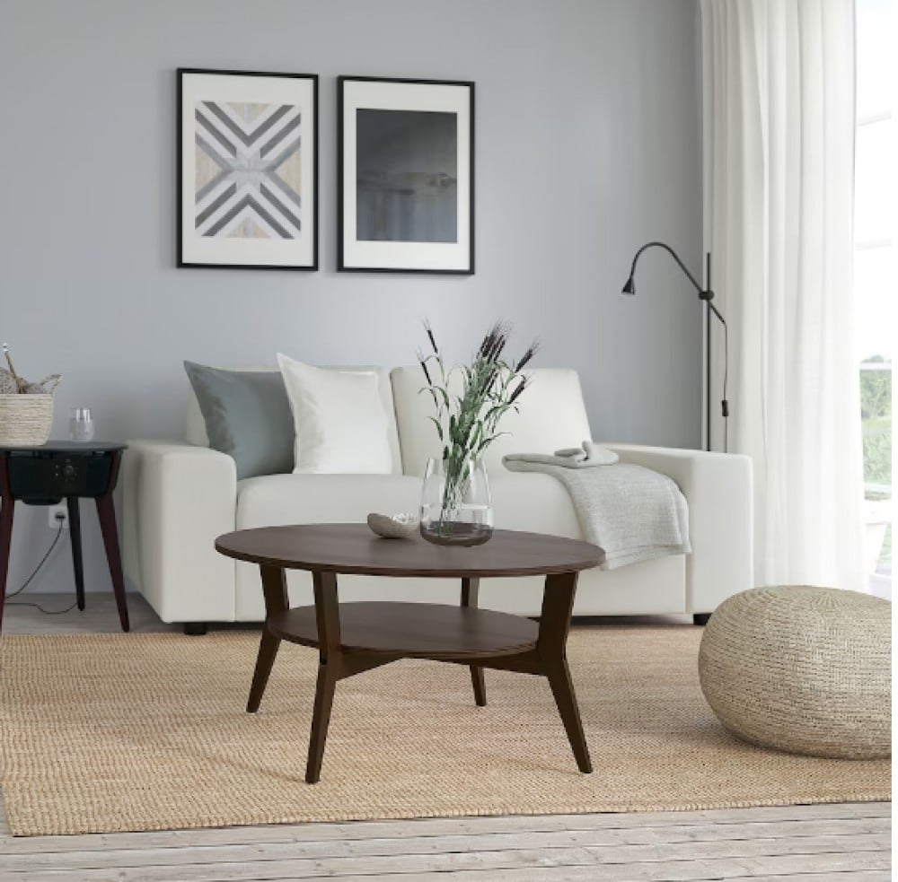 طاولة قهوة بتصميم بسيط بشكل دائري و قاعدة خشبية باربع ارجل. سطح طاولة خشبي مستدير و رف سفلي خشبي للتخزين . سطح الطاولة مناسب لوضع المشروبات، والوجبات الخفيفة، والكتب، والمجلات . الرف السفلي مناسب لتخزين الكتب، والمجلات . أو غيرها من الأدوات . يناسب مختلف أنواع الديكورات . و تأتى بمقاس ارتفاع 42 سم و قطر 80 سم و قطر الرف السفلى 50 سم . و تأتى بلون خشبى غامق .