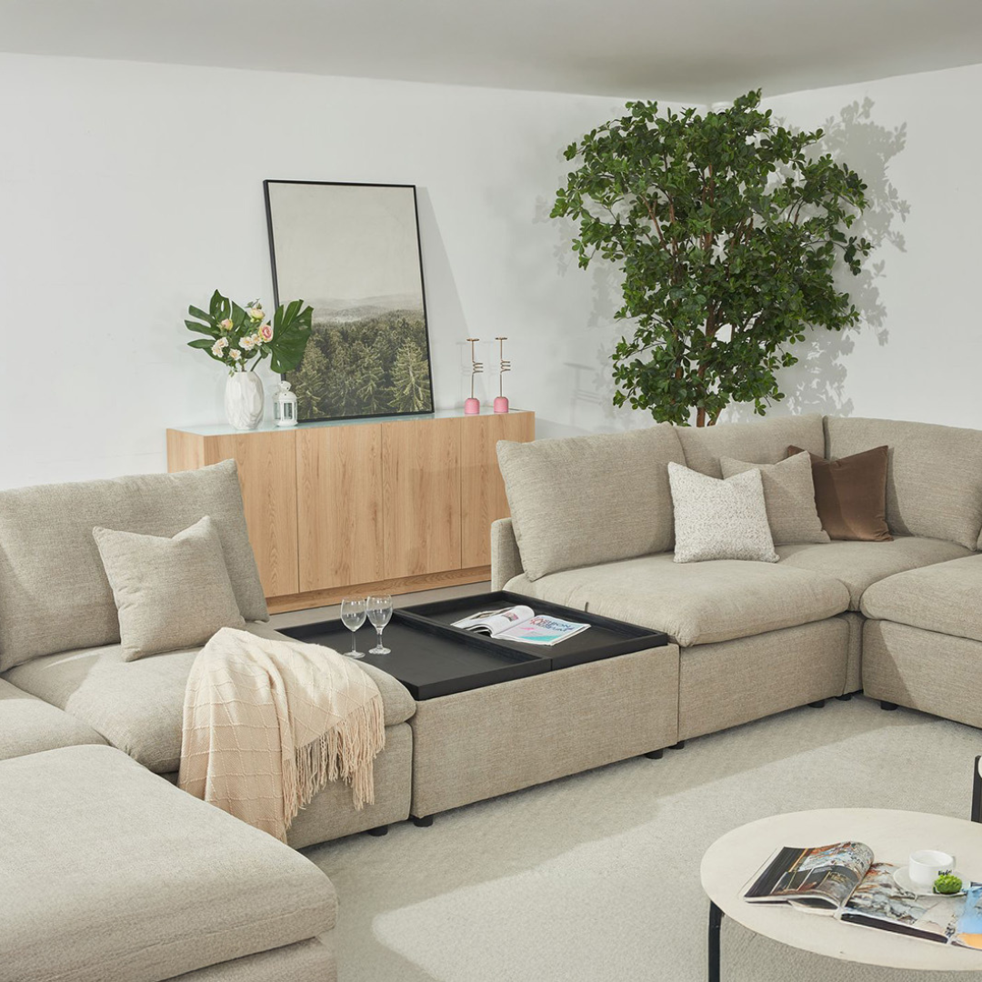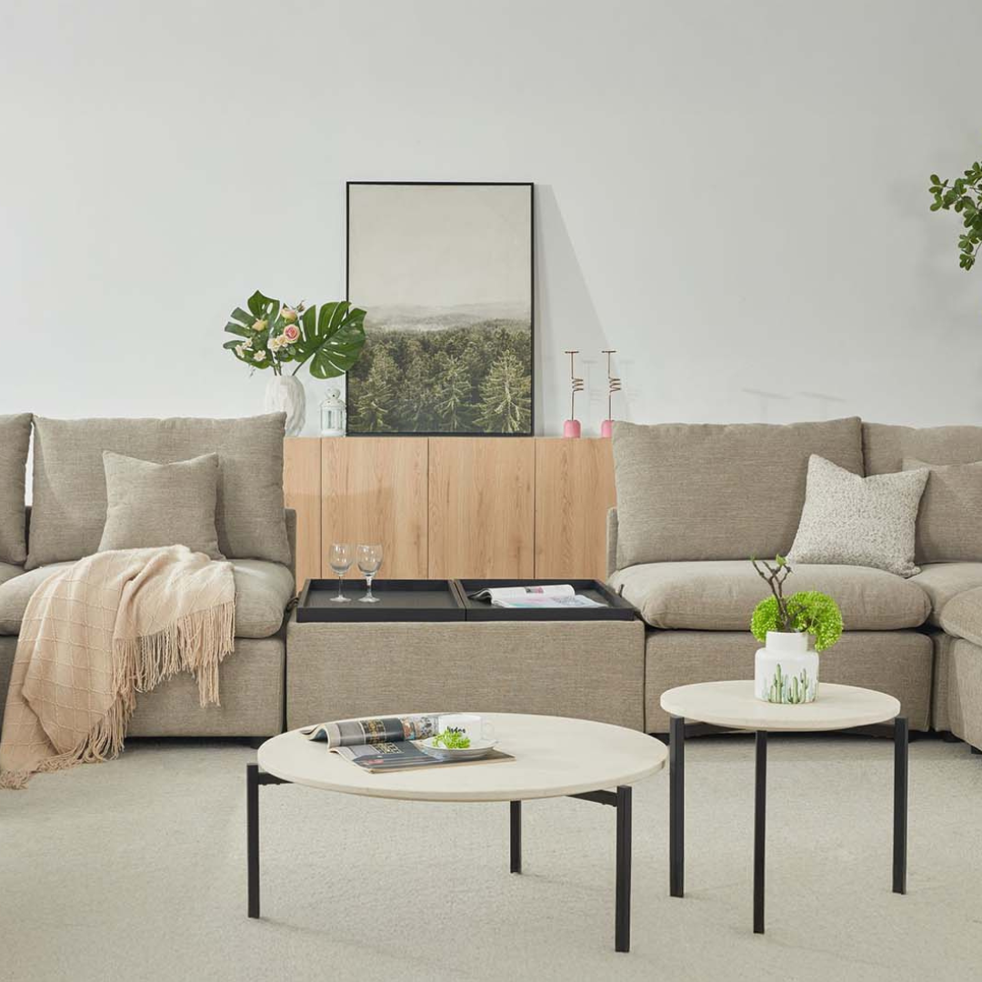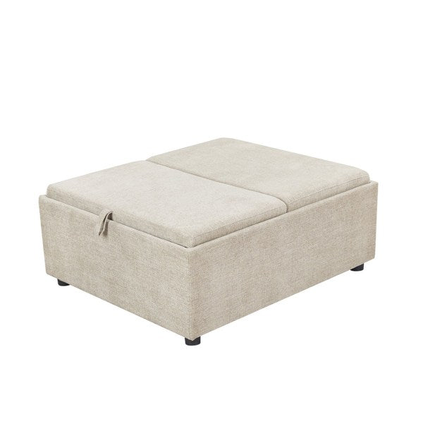 اكتشف التوازن المثالي بين الراحة الفائقة والتصميم العملي مع طاولة القهوة المبتكره. هذه القطعة الفريدة هي إضافة لا غنى عنها لأي مساحة معيشة حديثة، حيث تجمع بين الأناقة المريحة للمقعد والوظائف الذكية لطاولة القهوة. تتميز الطاولة بتصميمها الأنيق والمغطى بقماش فاخر من نسيج متين مما يمنحها مظهرًا عصريًا ويوفر لمسة ناعمة ومريحة. الجزء العلوي مقسم إلى جزأين يمكن فتحهما بسهولة، ليكشفا عن مساحة تخزين داخلية واسعة