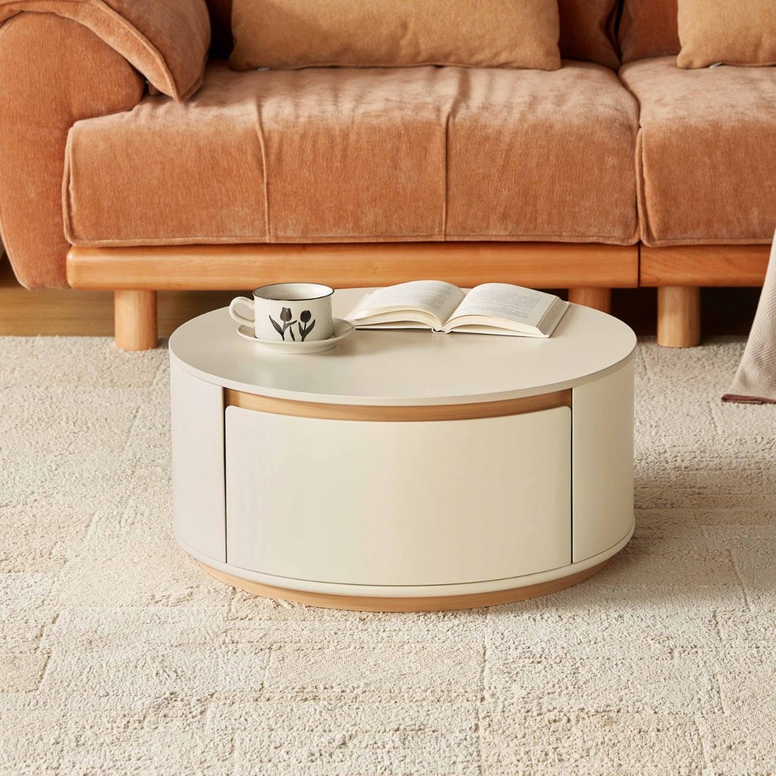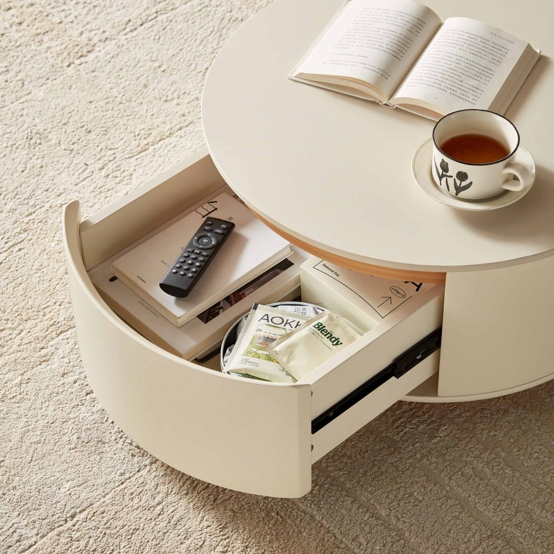 طاولة قهوة دائرية أنيقة تجمع بين البساطة والعملية في قطعة واحدة، تصميمها العصري يمنح المكان لمسة فخمة ودافئة، ومزودة بمساحة تخزين داخلية تساعدك على ترتيب أغراضك اليومية مثل الكتب أو أجهزة التحكم بطريقة منظمة، مصنوعة من خامات عالية الجودة بلمسة ناعمة وسطح متين سهل التنظيف، مثالية لغرفة المعيشة لإضافة مظهر راقٍ ووظيفة عملية في نفس الوقت.