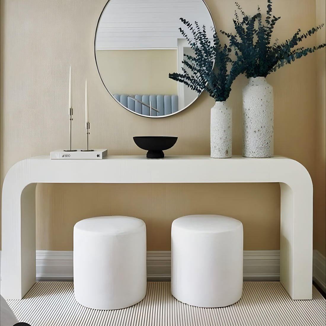 قطعة أنيقة تجمع بين البساطة والفخامة بلمسات ناعمة وخطوط منحنية تمنح المكان شكلًا راقيًا ومميزًا. توفر سطحًا عمليًا لتنسيق الديكورات، الشموع، الكتب أو الفازات، كما يمكن استخدامها في المدخل أو غرفة المعيشة لإكمال جمال المساحة. تصميمها يعكس ذوقًا عصريًا مع إمكانية تنسيقها مع مختلف أنماط الديكور.