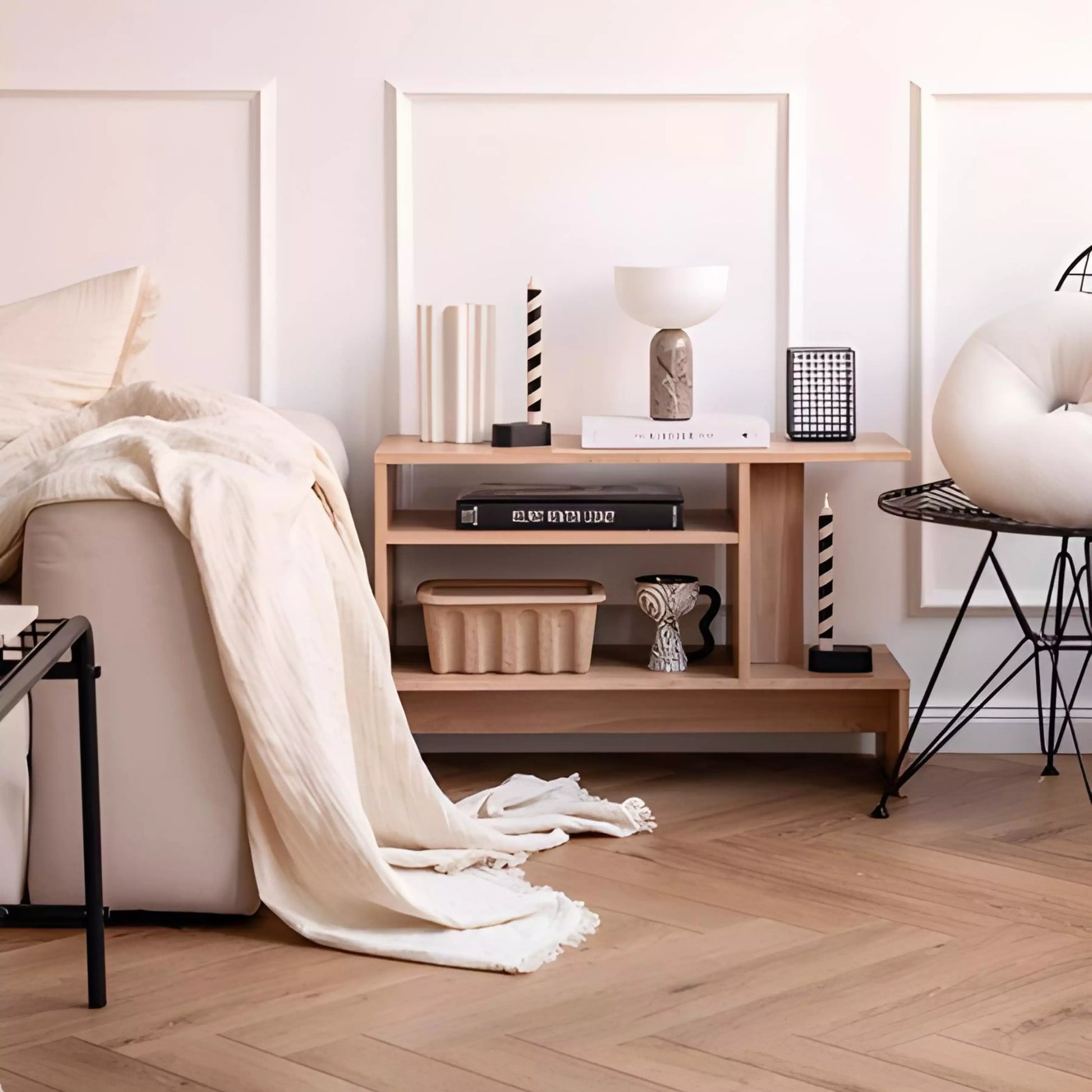 جدّد مساحتك بلمسة من الدفء الاسكندنافي والأناقة البسيطة مع هذه الطاوله. صُممت الطاولة من الخشب الطبيعي الفاتح لتوفر لك قطعة عملية وأنيقه في أن واحد. يتميز تصميمها بـخطوط نظيفة ومستقيمة، مع عدة أرفف تتيح لك تنظيم وعرض كتبك، أو أجهزتك الإلكترونية، أو قطع الديكور المفضلة لديك بأناقة متناهية. إنها القطعة المثالية لمن يبحث عن حل تخزين فعال يكمل ديكور غرفة المعيشة أو غرفة النوم بأسلوب عصري وهادئ.
