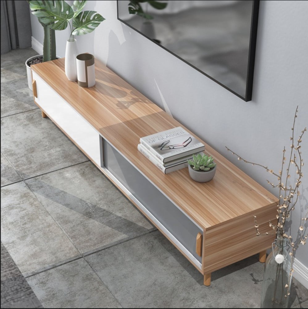 خزانة تلفاز رائعه مصنوعه من اخشاب mdf عالي الجوده وشديد المتانه والتحمل . تحتوي الخزانه علي سطح خشبي املس يسهل تنظيفه . ودرجين امامين انزلاقين واسعين المساحه من الداخل و متوفره ب اللون ( خشبي _ أبيض ) و مقاس ( العمق 30 * العرض 180 * الارتفاع 40 سم )