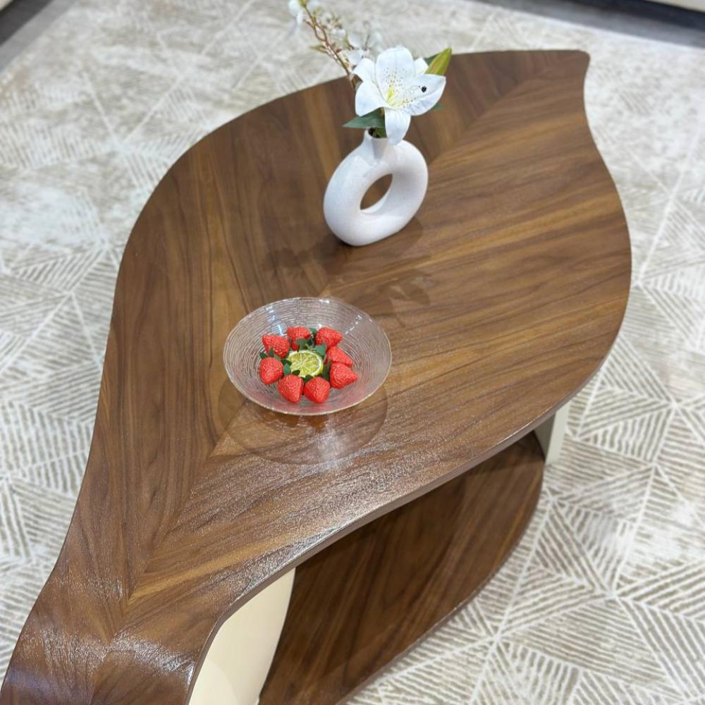 تجمع هذه الطاولة الاستثنائية بين الأناقة العصرية وجمال الطبيعة، لتكون قطعة مركزية تُلفت الأنظار في غرفة معيشتك. مصنوعة من خشب عالي الجودة بتشطيب دافئ وغني، وتتميز بانحناءات انسيابية وتصميم مبتكر يضيف لمسة من الرقي والفخامة.