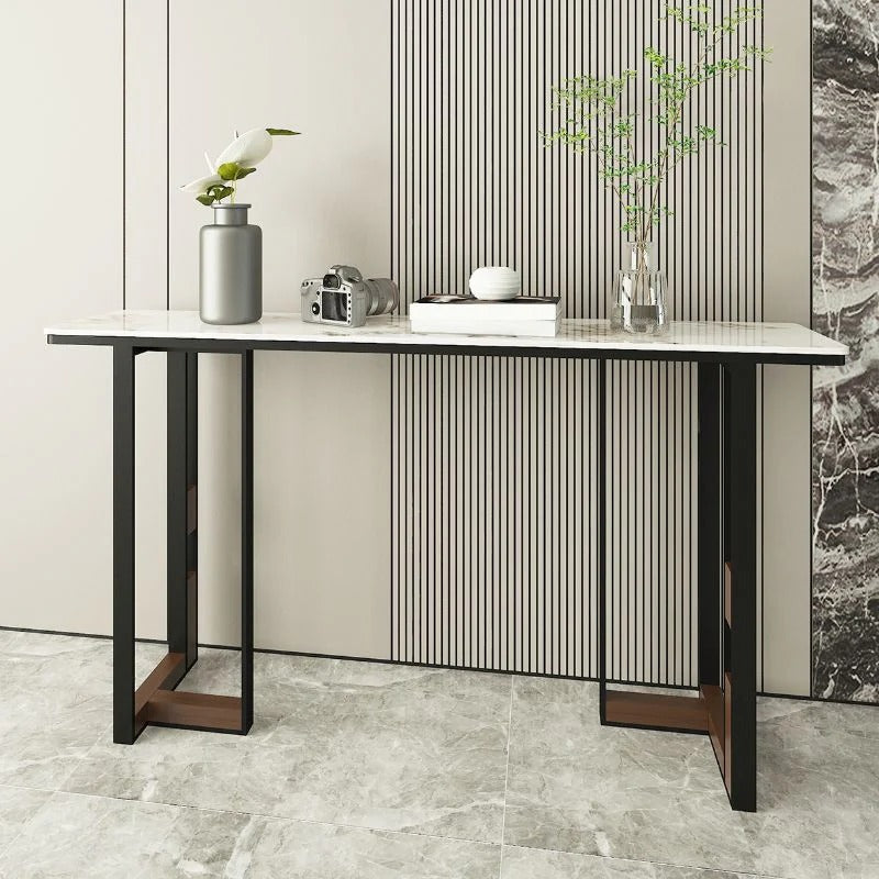 كونسول مودرن لاين بتصميم أنيق يجمع بين بديل الرخام الفاخر والإطار المعدني الأسود لتمنحك لمسة عصرية راقية. مثالية للمداخل أو غرف المعيشة أو المكاتب، تضيف فخامة بسيطة وتنظيم عملي للمساحة مع سطح واسع يسهل تنسيق الديكورات عليه.