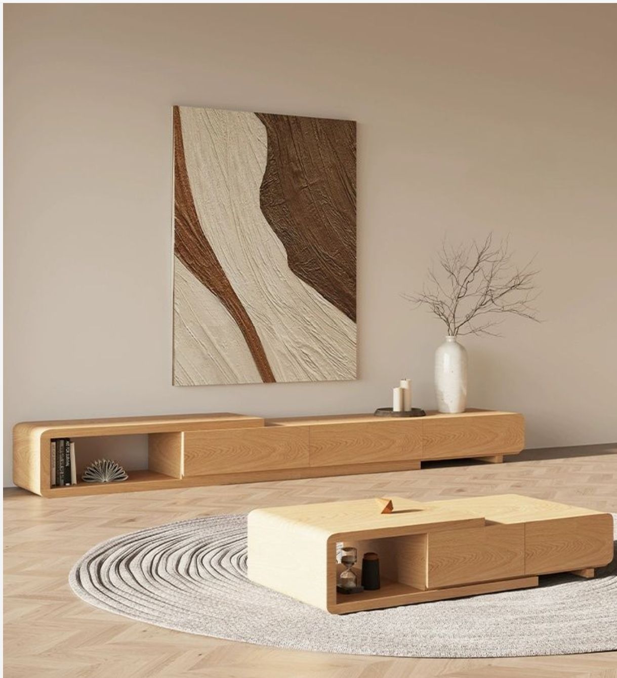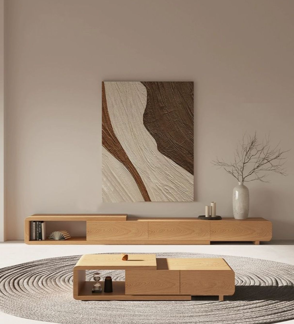 طقم طاولات قهوه مع تلفاز بنمط هادئ