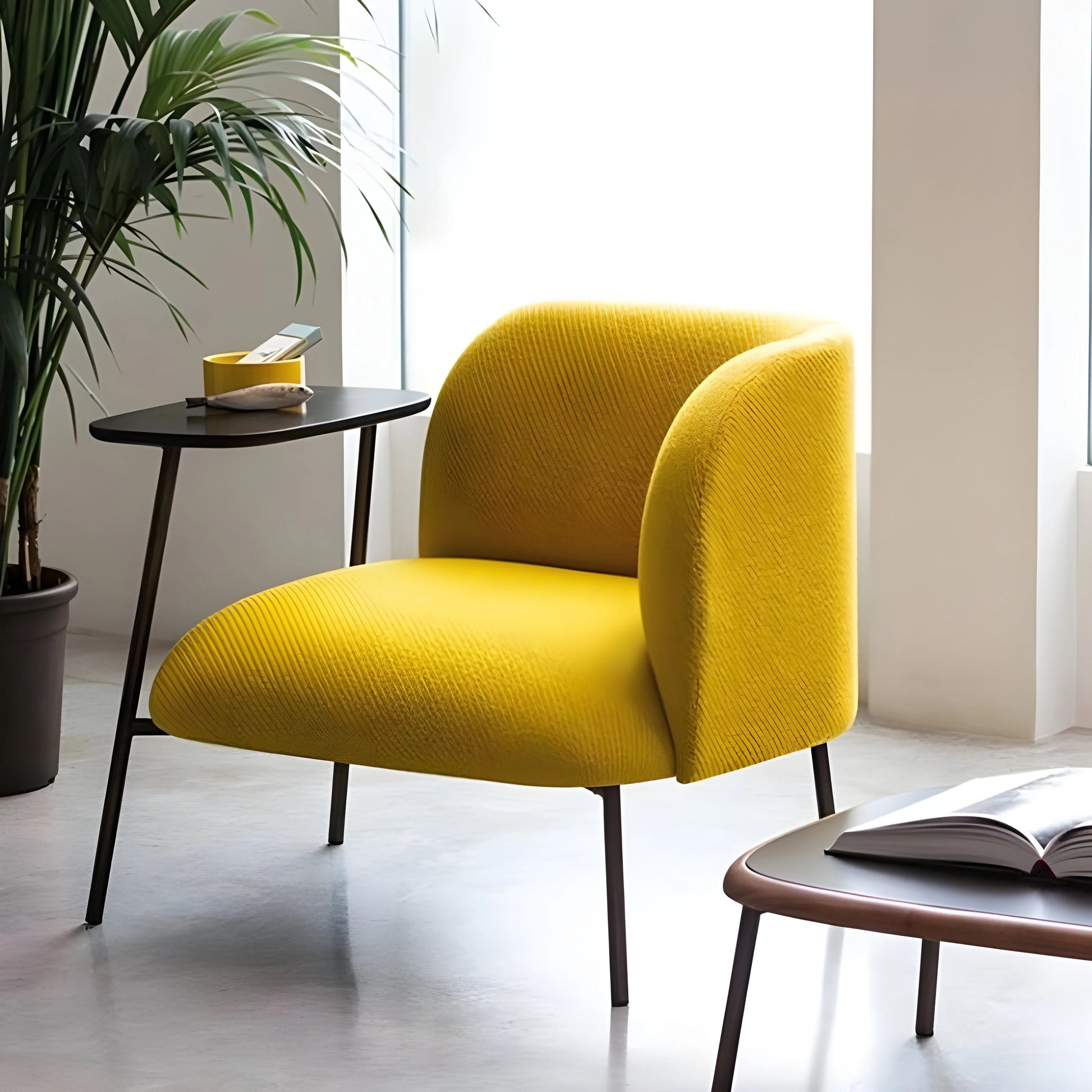 كرسي بتصميم عصري مفعم بالحيوية، يجمع بين الأناقة والراحة بلونه الأصفر الجذاب الذي يضفي لمسة من الإشراق على أي مساحة. يتميز بمقعد فخم مبطن وساقين معدنيتين رفيعتين تمنحانه ثباتاً وأناقة خفيفة. مثالي لزوايا القراءة أو غرف المعيشة أو المكاتب العصرية. قطعة واحدة تجمع بين الراحة والذوق الرفيع.