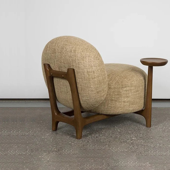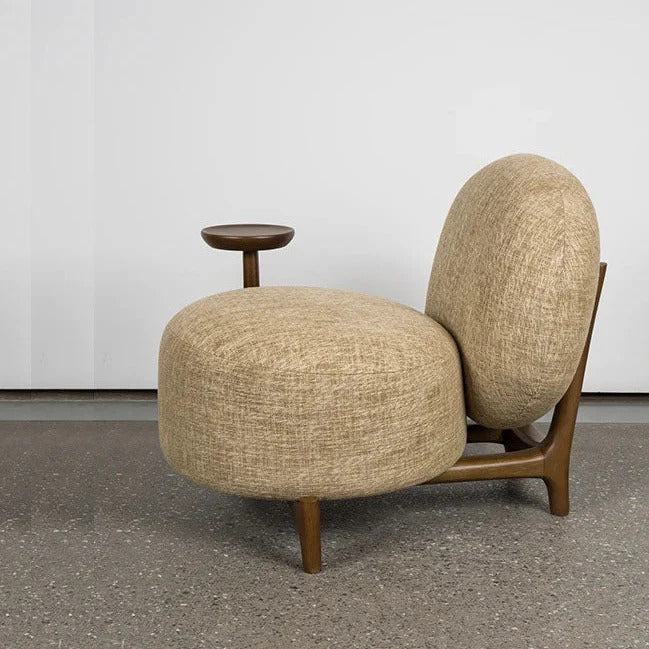 كرسي بتصميم فريد يجمع بين الراحة والأناقة، يتميز بقاعدة خشبية متينة ومقعد مبطن بقماش ناعم يمنح جلسة مريحة. مزود بطاولة جانبية صغيرة مدمجة لتضع كوبك أو كتابك المفضل، مما يجعله مثالياً للاسترخاء في غرفة المعيشة أو زاوية القراءة.