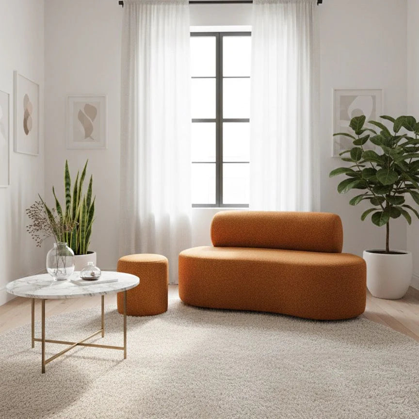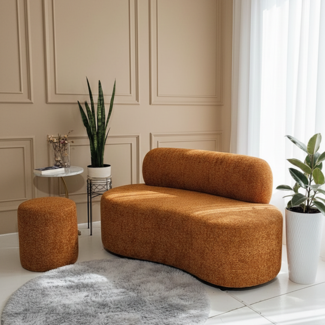 كنبة مودرن بتصميم انسيابي مريح تضيف لمسة فخامة لأي زاوية في بيتك. قطعة واحدة عملية تجمع بين الراحة والشكل العصري، مناسبة لغرفة المعيشة أو الركن الهادئ، وتوفر جلسة ناعمة وثابتة بفضل خامتها المبطنة عالية الجودة. تصميمها المنحني يجعلها قطعة ديكور جذابة وسهلة الدمج مع أي مساحة."