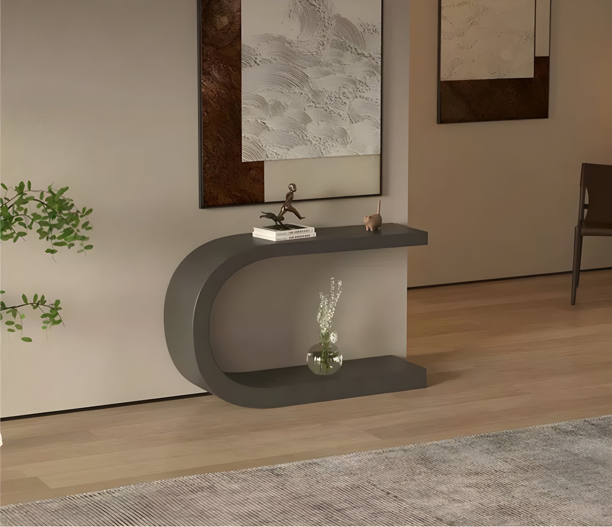 كونسول مدخل بتصميم إنسيابي مودرن , صمم خصيصا ليضيف لمسة من الجاذبية والأناقة الي مدخل منزلك حيث وذلك بفضل التصميم الهندسي المدروس والمتقن , كما انة تم استخدام افضل الخامات واجودها مع الوان عديدة لتقديم منتج يناسبك.