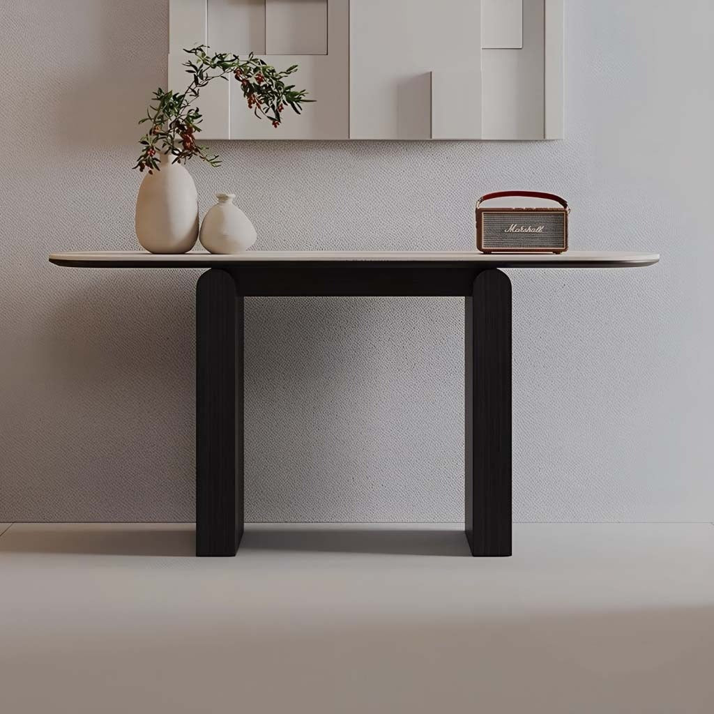 طاولة كونسول بتصميم عصري راقٍ تجمع بين البساطة والفخامة، بسطح علوي أنيق باللون الفاتح وقاعدة خشبية قوية تمنحها توازنًا بصريًا جذابًا. مثالية لوضعها في المداخل أو غرف المعيشة لعرض الديكورات أو المزهريات أو الإكسسوارات المفضلة. تضيف لمسة دفء وأناقة للمساحة بفضل خطوطها الانسيابية وتصميمها العصري المتناسق.