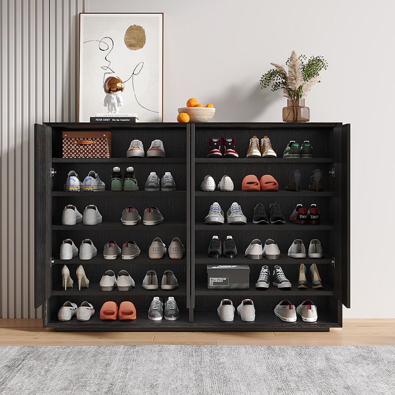 أضف لمسة من الفخامة والعمق إلى مدخلك مع خزانة التخزين هذه بتصميمها الجريء والفاخر. تتميز الخزانة بلون أسود و لون أبيض دافي. توفر الوحدة مساحة تخزين مغلقة وواسعة عبر ثلاثة أبواب طولية تخفي الأرفف الداخلية بذكاء، وهي مثالية لحفظ عدد كبير من الأحذية أو الأغراض المنزلية بعيداً عن الأنظار. الجزء السفلي مزود بـ رف مفتوح ومقسم يتيح لك سهولة الوصول إلى الأحذية المستخدمة يومياً. هذه الخزانة تجمع بين المظهر الفخم والوظيفة المثالية، وتعمل كمنصة أنيقة لعرض الديكورات، مما يجعلها الإضافة المثالية لمنزل يبحث عن الأناقة المينيمالية في المدخل.